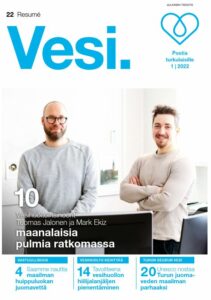 Tässä numerossa artikkeleiden aiheina ovat muun muassa valintojen vaikutus vesijalanjälkeen, puhtaan veden merkitys erilaisille yrityksille, veden laadun mittaaminen ja vesijohtoverkoston mallinnus. Lue myös, miksi vesi on paras janojuoma lapsille. Haastattelussa on tuore asiakaspalveluyksikön päällikkö Tommi Rantanen.